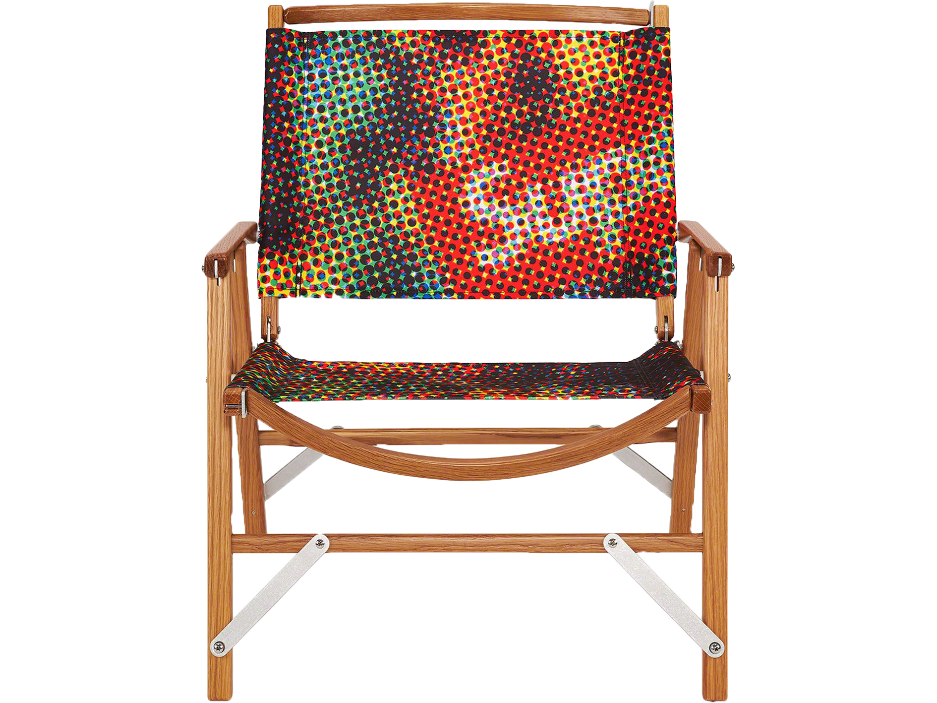 In the Spring of 2022, we got approached by the streetwear giant Supreme to do a limited run of chairs for their Spring / Summer 2023 collection. They custom printed a cohesive multicolor back and seat fabric to pair with our standard oak frame. The chairs launched that April and sold out.