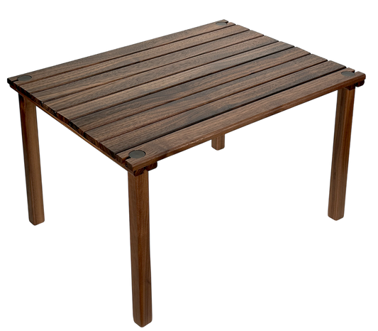 Our tables are the ultimate companion to our chairs. Each table is designed to be disassembled and rolled up into a bag just like our chair design. Each table is manufactured using the same quality oak wood and walnut wood as our chairs.